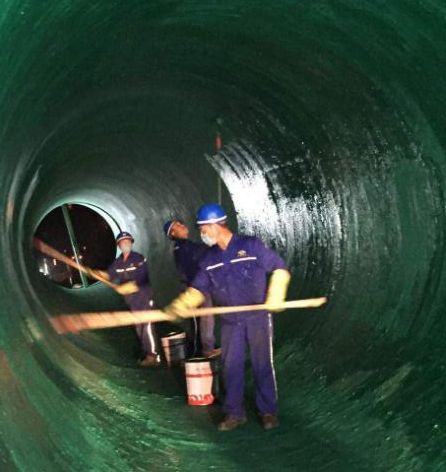 5.當一切防腐層檢測合格后,在內襯層表面涂刷一層面漆。面漆的涂刷及環(huán)節(jié)要求與底漆相同。根據(jù)現(xiàn)場環(huán)境溫度按照相應的比例在面漆中加入固化劑和促進劑攪拌均勻后使用(注意:促進劑和固化劑嚴禁同時加入,應當先加入促進劑攪拌均勻后再加入固化劑攪拌均勻)。