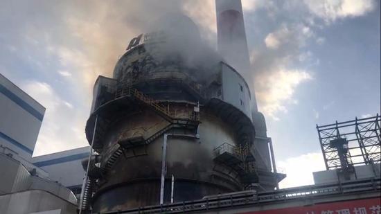 2017年5月3日,山東日照嵐山區(qū)鋼鐵廠脫硫塔著火